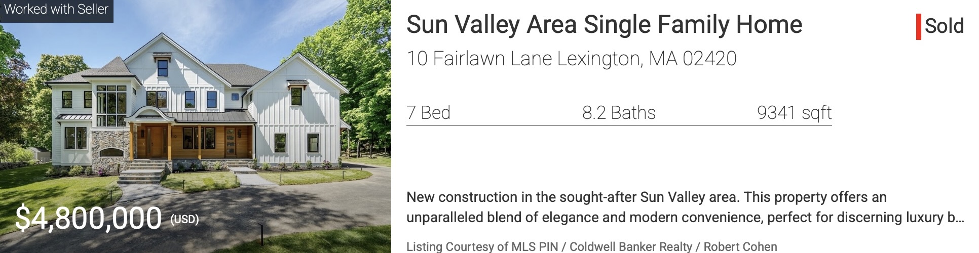 Robert Cohen’s recent Lexington, Massachusetts sales.
